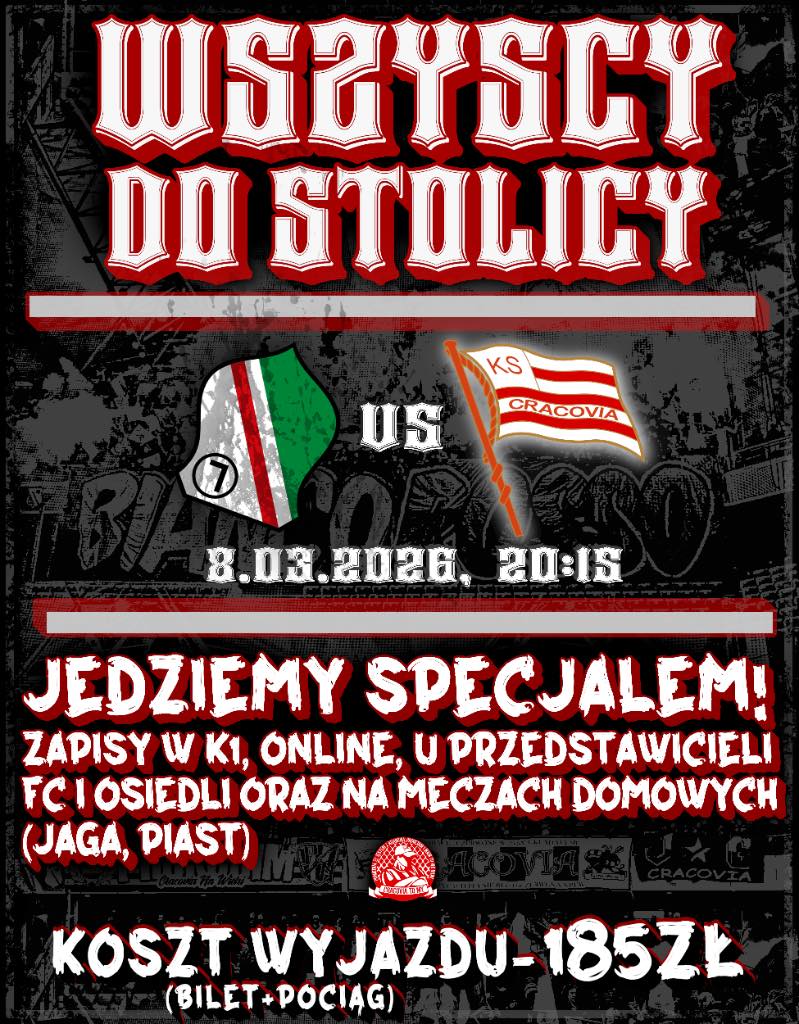 Emocje po ostatnich kilku wyjazdach pomału opadają dlatego podkręcamy atmosferę na nowo. Ruszamy z zapisami na wyjazd do Warszawy, gdzie nasza drużyna powalczy o ligowe punkty, a również miejmy nadzieję, że przybliży drużynę przeciwną do „awansu” do 1 ligi.